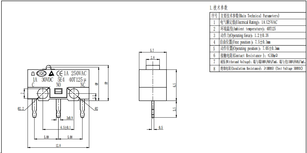 ການນໍາໃຊ້ກົນໄກທີ່ມີສິດທິພິເສດຂອງການກະທໍາທີ່ມີສິດທິບັດ, ເວລາຕອບສະຫນອງທີ່ມີສິດທິບັດແມ່ນ≤8ms, ການປັບປຸງການປະຕິບັດໂດຍ 25% ທຽບໃສ່ກັບການສັບຊ້ອນຂອງຈຸລິນທອນ. ການເດີນທາງທີ່ກະຕຸ້ນແມ່ນຖືກຄວບຄຸມຢ່າງຊັດເຈນລະຫວ່າງ 0.3-1.0mm, ມີລະດັບແຮງງານປະຕິບັດການ 1.5-4n. ຄໍາຕິຊົມຂອງການກົດປຸ່ມແມ່ນຈະແຈ້ງແລະຊັດເຈນ, ໂດຍບໍ່ຕ້ອງຕິດຫຼືຫຼີ້ນຟຣີ, ໃຫ້ການສໍາພັດແສງສະຫວ່າງ, ປ່ອຍໃຫ້ແຕກແຍກຢ່າງສົມບູນສໍາລັບສະຖານະການທີ່ຕ້ອງການຄວາມອ່ອນໄຫວສູງ. ລາຍຊື່ຜູ້ຕິດຕໍ່ແມ່ນເຮັດດ້ວຍໂລຫະປະສົມເງິນທີ່ມີຄ່າບໍລິສຸດແລະການປຸງແຕ່ງດ້ວຍການເຊື່ອມໂລຫະຈຸດທີ່ຊັດເຈນ, ໂດຍມີຄວາມຕ້ານທານໃນເບື້ອງຕົ້ນຂອງ≤30mω. ການໂຫຼດທີ່ໃຫ້ຄະແນນສະຫນັບສະຫນູນ 1A / 250V AC ແລະ 3A / 125V AC, ປ້ອງກັນຄວາມຮ້ອນທີ່ມີປະສິດທິຜົນຫຼືການເຜົາໄຫມ້ເມື່ອປະຈຸບັນຜ່ານໄປ.